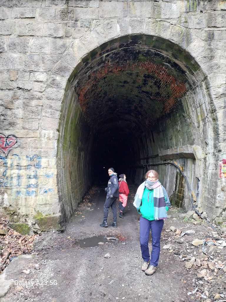 Odwiedzamy na trasie nieczynny tunel kolejowy wydrążony w skale w drugiej połowie XIX wieku. Mały Wołowiec to jeszcze Góry Wałbrzyskie. Ciekawostką jest to, że tunel ten i znajdujący się obok drugi, czynny tunel, są najdłuższymi tunelami kolejowymi w Polsce.